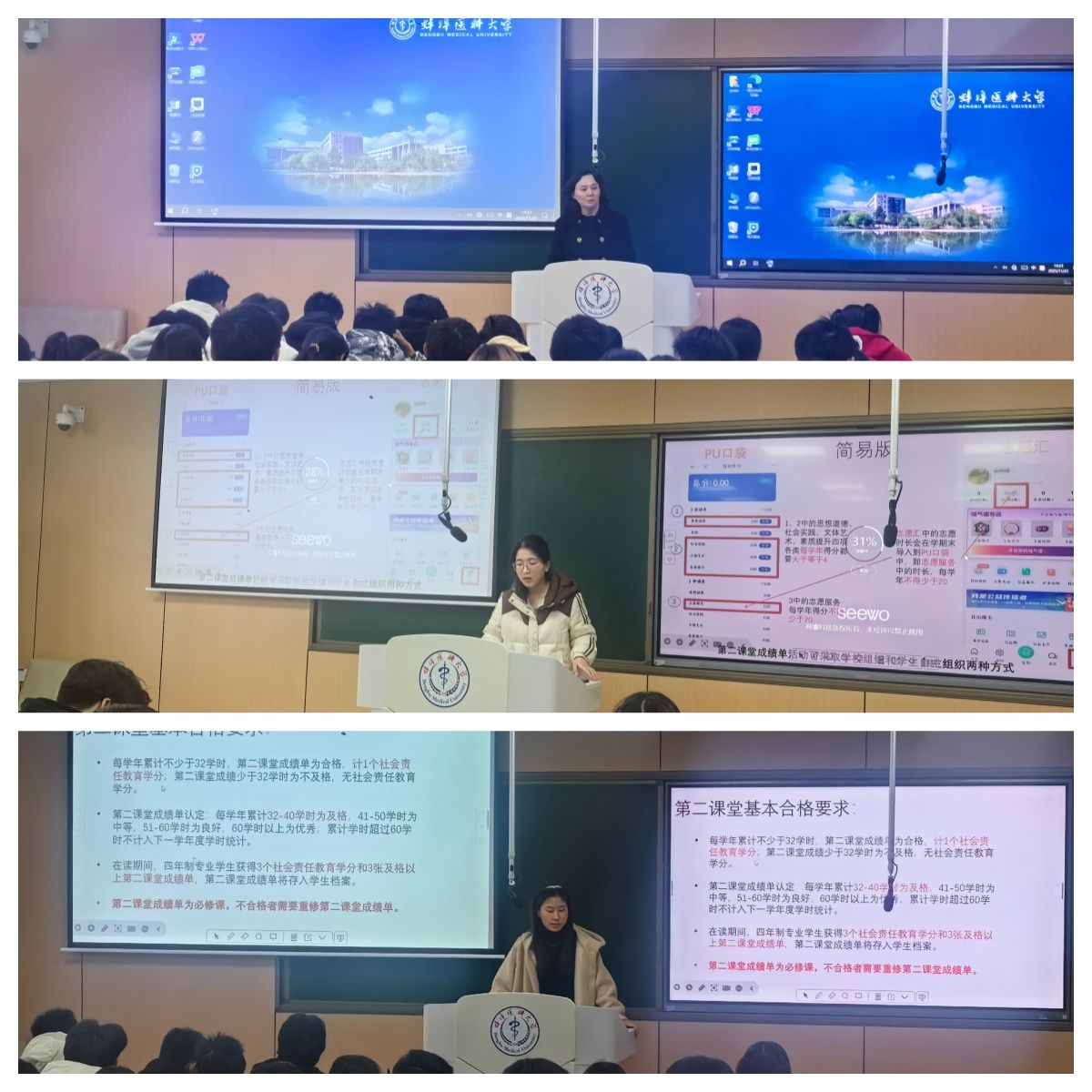年级老师针对即将到来的考试月,结合专业特点给出详实的复习建议,强调合理规划时间、掌握高效学习方法的重要性;强调诚信考试的底线要求,引导新生树立“以诚信立身、以学识立足”的正确观念。在日常管理方面,年级老师对课堂纪律规范、寝室卫生及安全注意事项进行细致说明,要求新生严格遵守校规校纪,营造整洁安全的住宿环境和专注高效的学习氛围。此外,还针对医保政策的参保范围、报销流程、待遇标准等核心内容进行解读,帮助新生全面了解医疗保障权益,为健康校园生活筑牢基础。