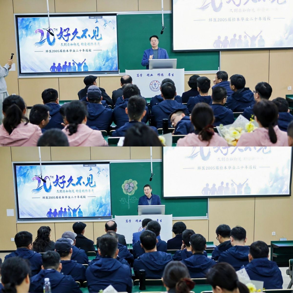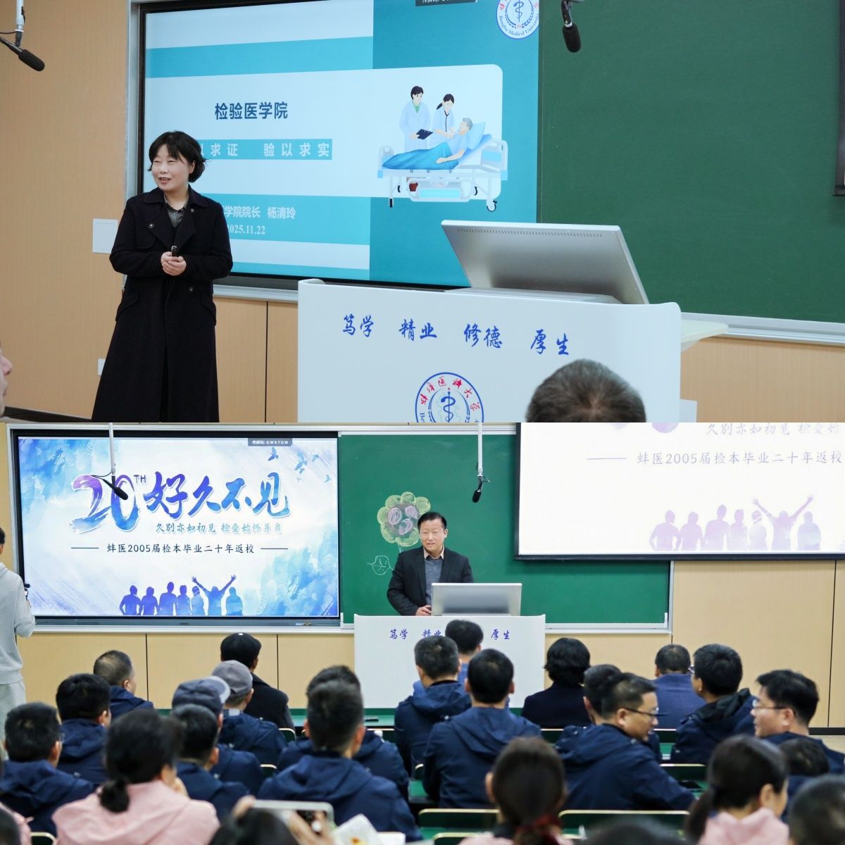杨清玲代表学院对2005届校友返校表示热烈欢迎,并介绍近年来学院在学科建设、人才培养、科研创新等方面的发展成效。她指出,各位校友始终秉承蚌医精神,在各自岗位上以精湛医术守护健康,以仁爱之心服务社会,为母校赢得了广泛的声誉。感谢校友们长期以来对学院的关注与支持,期待未来与大家继续携手共进。