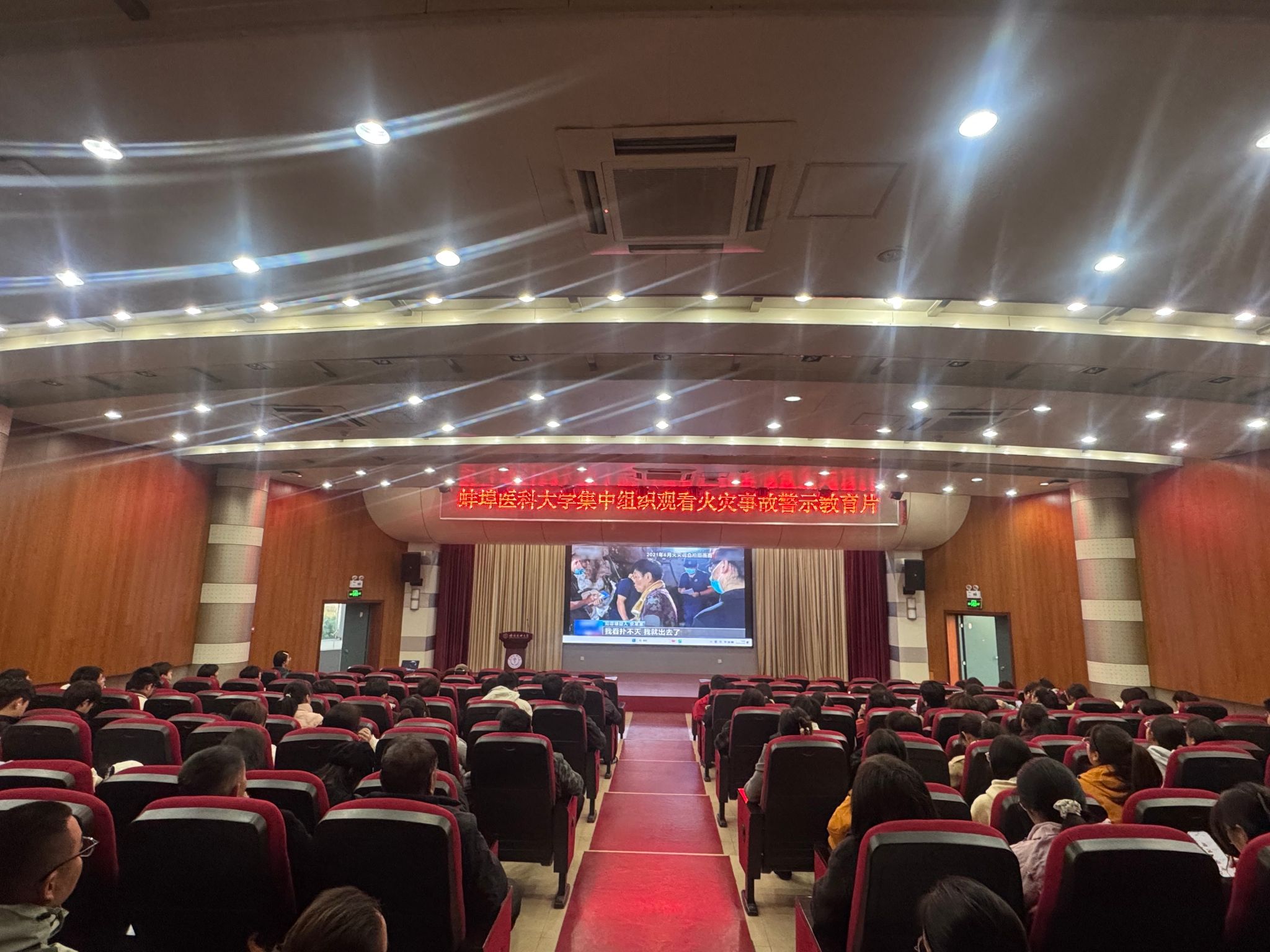 为全面提升师生医护员工的消防安全防范意识与应急处置能力,11月25日下午,校保卫处集中组织师生观看火灾事故警示教育片。学校各部门消防安全员、校园后勤服务第三方合作企业负责人及各学院学生代表共同观看。