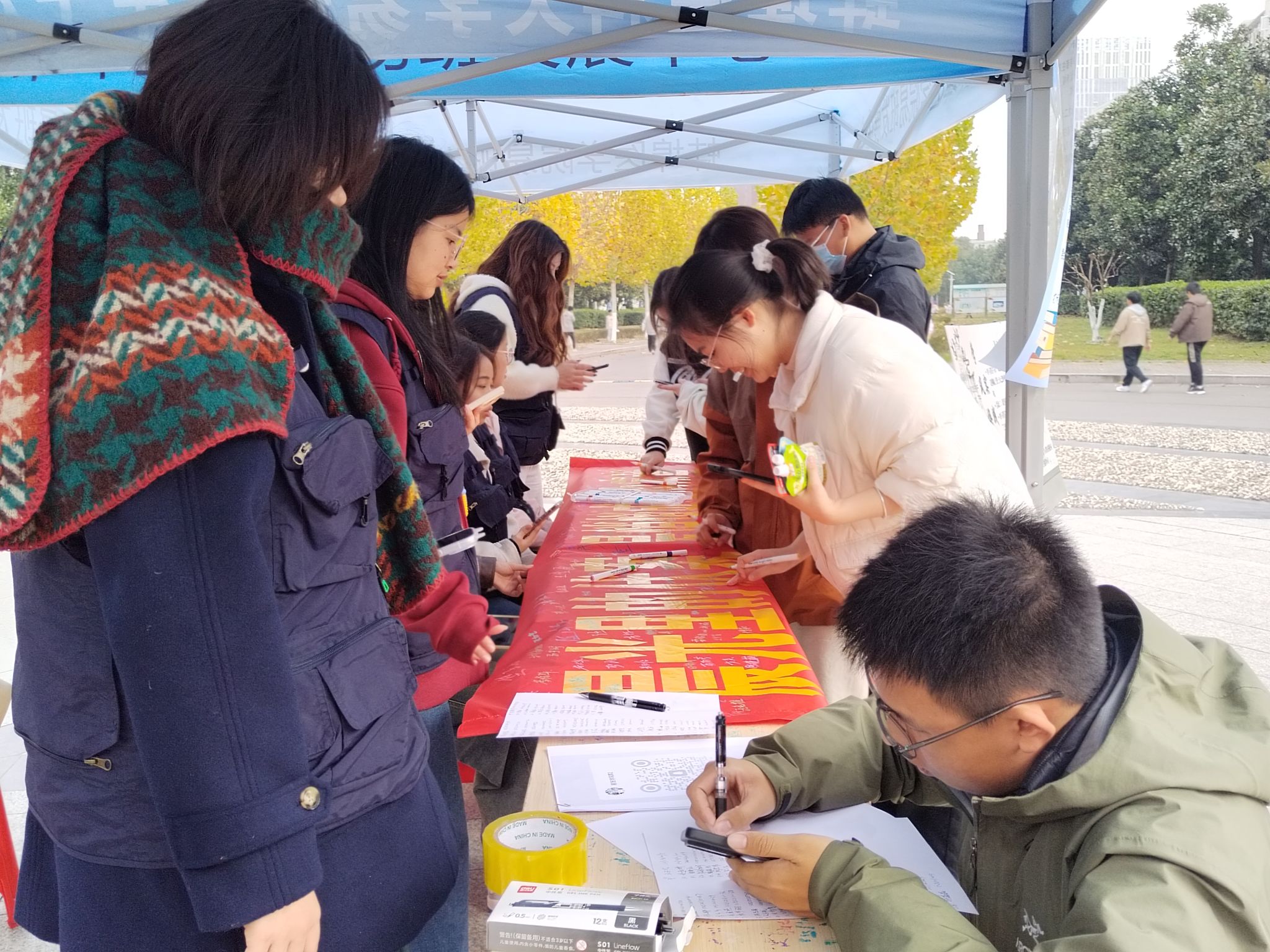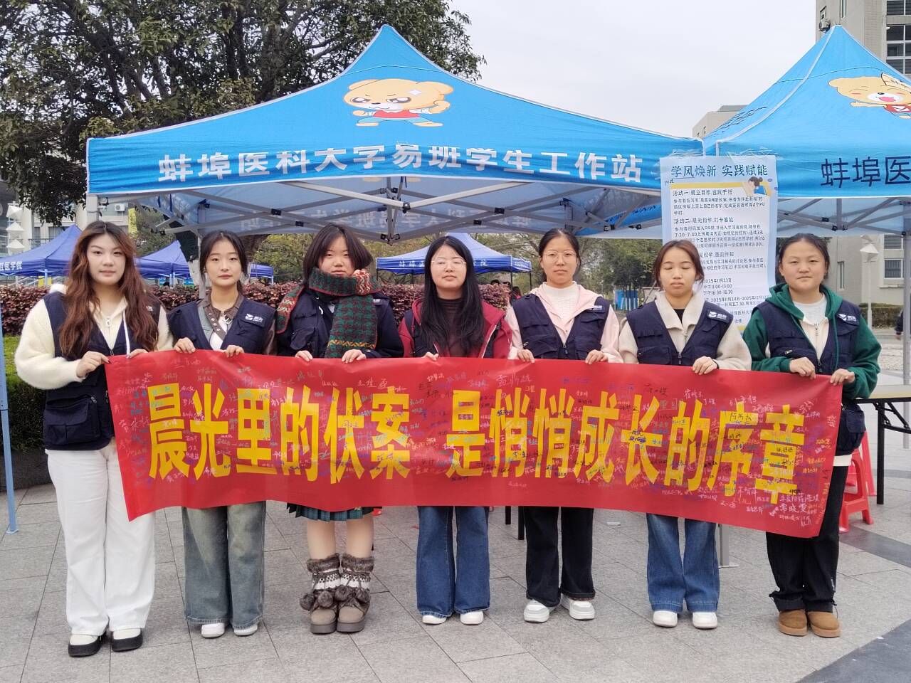 活动之一是组织晨读打卡活动。11月23日,在印有“晨露未晞勤伏案,书香为伴赴新程”的横幅前,同学们依次签下姓名,承诺践行优良学风、坚持晨读打卡。签名同学加入易班创建的“学习通”班级群,设置“晨读+自习”每日签到打卡,融入“21天养成法”助力同学们养成自律学习习惯。该群还将作为学习交流平台,鼓励大家分享优质学习笔记,构建资源共享、互助共进的学习氛围。本次活动坚持通过“线下签名强信念、线上打卡养习惯、经验分享促提升”的机制,为学风建设添砖加瓦,赢得了同学们的积极响应。
