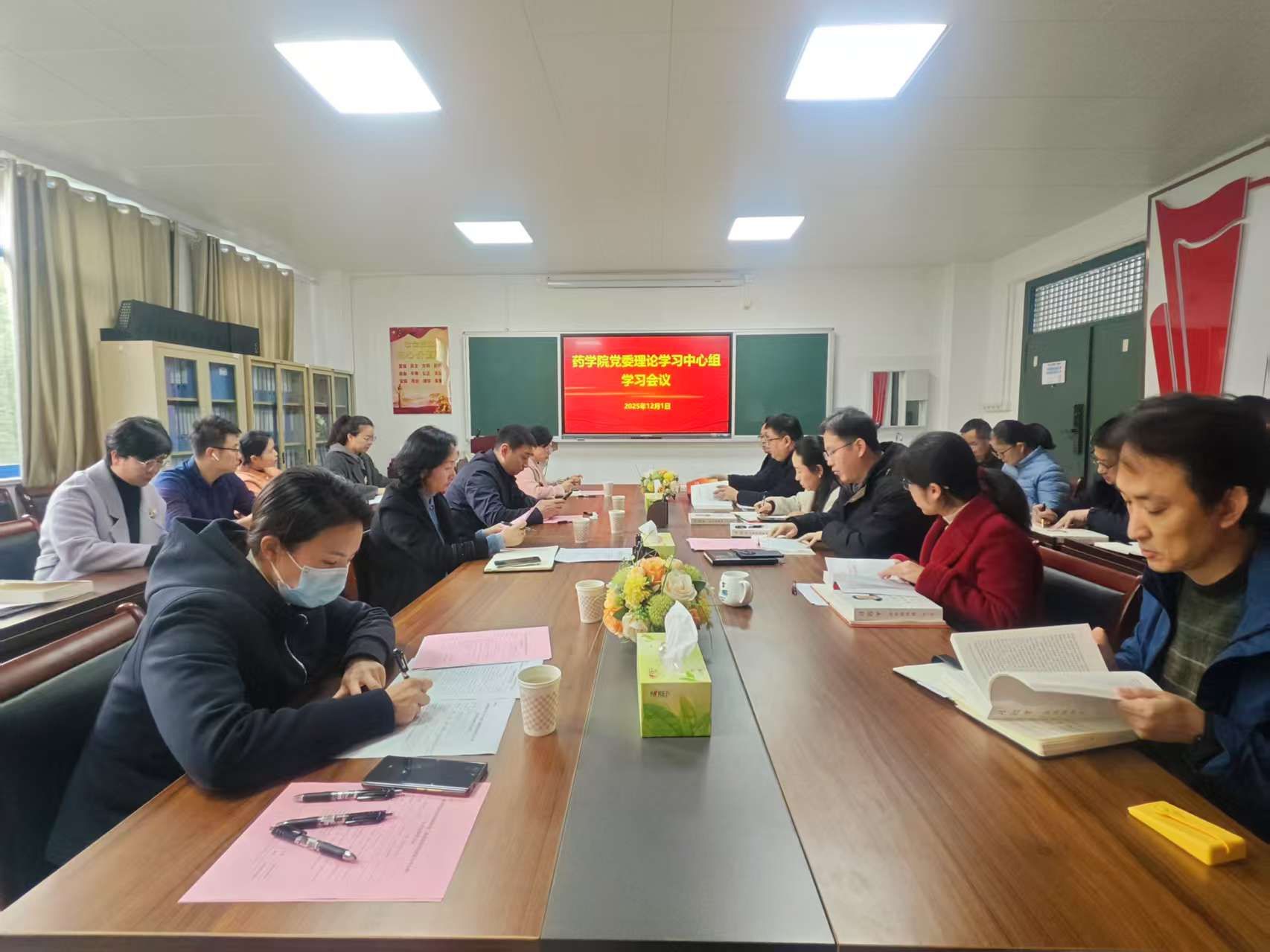 12月1日上午,药学院召开党委理论学习中心组(扩大)学习会议,学院党政班子、各支部书记、科以上干部参加,学生处处长马嬿、校团委副书记凌浩等到会巡听旁听指导。