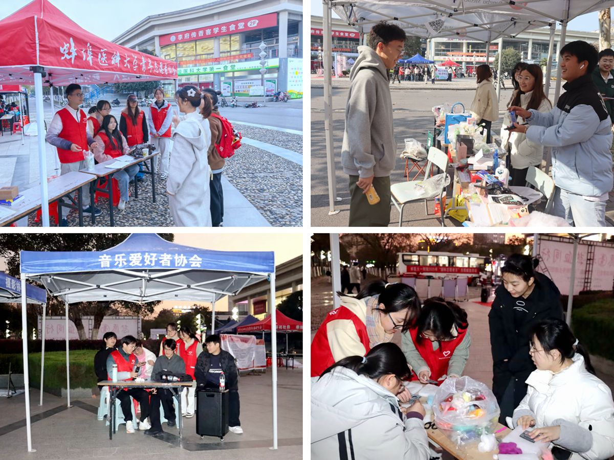 本次活动由校青年志愿者协会承办,各学院青协及相关学生社团共同协办,划分为献血服务区、志愿服务区、跳蚤市场及社团展示区四大板块。在献血车服务点,检验医学院青协志愿者全程协助血站工作人员开展咨询引导、秩序维护与关怀服务,保障献血流程顺畅温馨。校青协组织开展“手语承善,热血传情”手语教学活动,推广无障碍沟通理念,增强活动的人文关怀。北区社团展示区内,戏曲社、音乐爱好者协会、手工艺协会及摄影爱好者协会分别设立展位,通过表演、体验、教学等形式,展示社团风采,探索“文艺+公益”志愿服务新模式,为今后开展社区服务、慰问演出等合作奠定了良好基础。