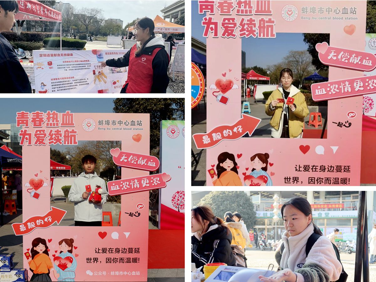 为迎接第40个“12·5”国际志愿者日,弘扬“奉献、友爱、互助、进步”的志愿精神,增强青年学生的社会责任和健康意识,校团委联合蚌埠市中心血站,于12月5日至7日组织开展了“志愿青春 热血同行”“12.5”国际志愿者日“无偿献血”志愿服务主题团日活动。本次活动吸引了广大师生积极参与,据统计,活动期间我校54名师生参与无偿献血,献血总量达17000毫升。