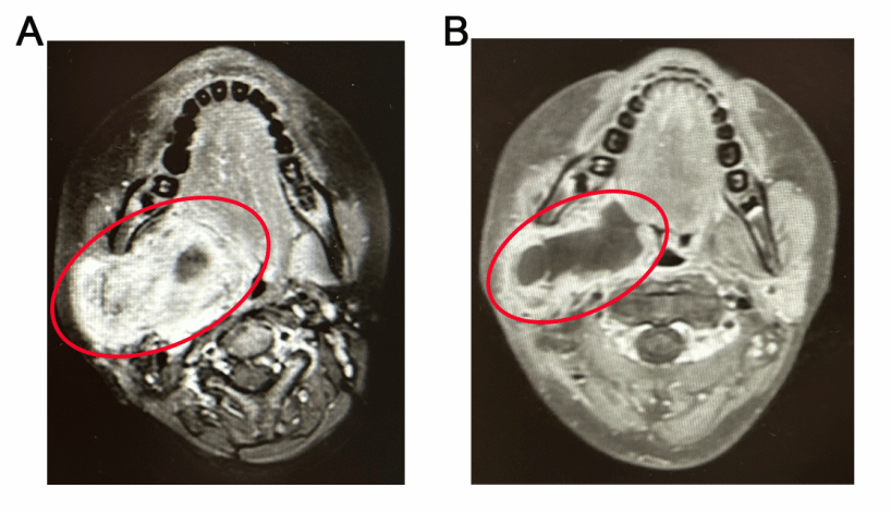 13岁男孩祝某,2年前确诊右侧腮腺癌并接受化放疗联合治疗。近期复查显示肿瘤复发,病灶位于头颅部且体积较大。作为未成年患者,长期多周期治疗已导致其本人及家属身心疲惫。