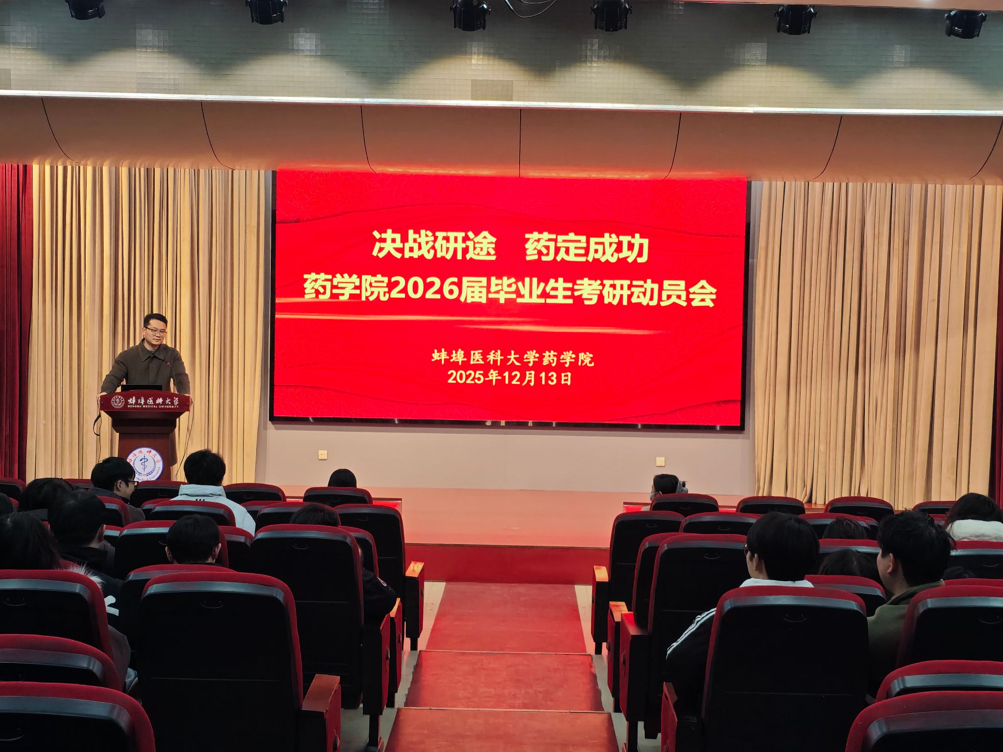 为切实做好2026届考研学子考前保障工作,鼓舞士气、调整心态,12月13日,药学院召开2026届毕业生考研动员大会。学院副院长梁丽丽、毕业班辅导员及考研学子参加。