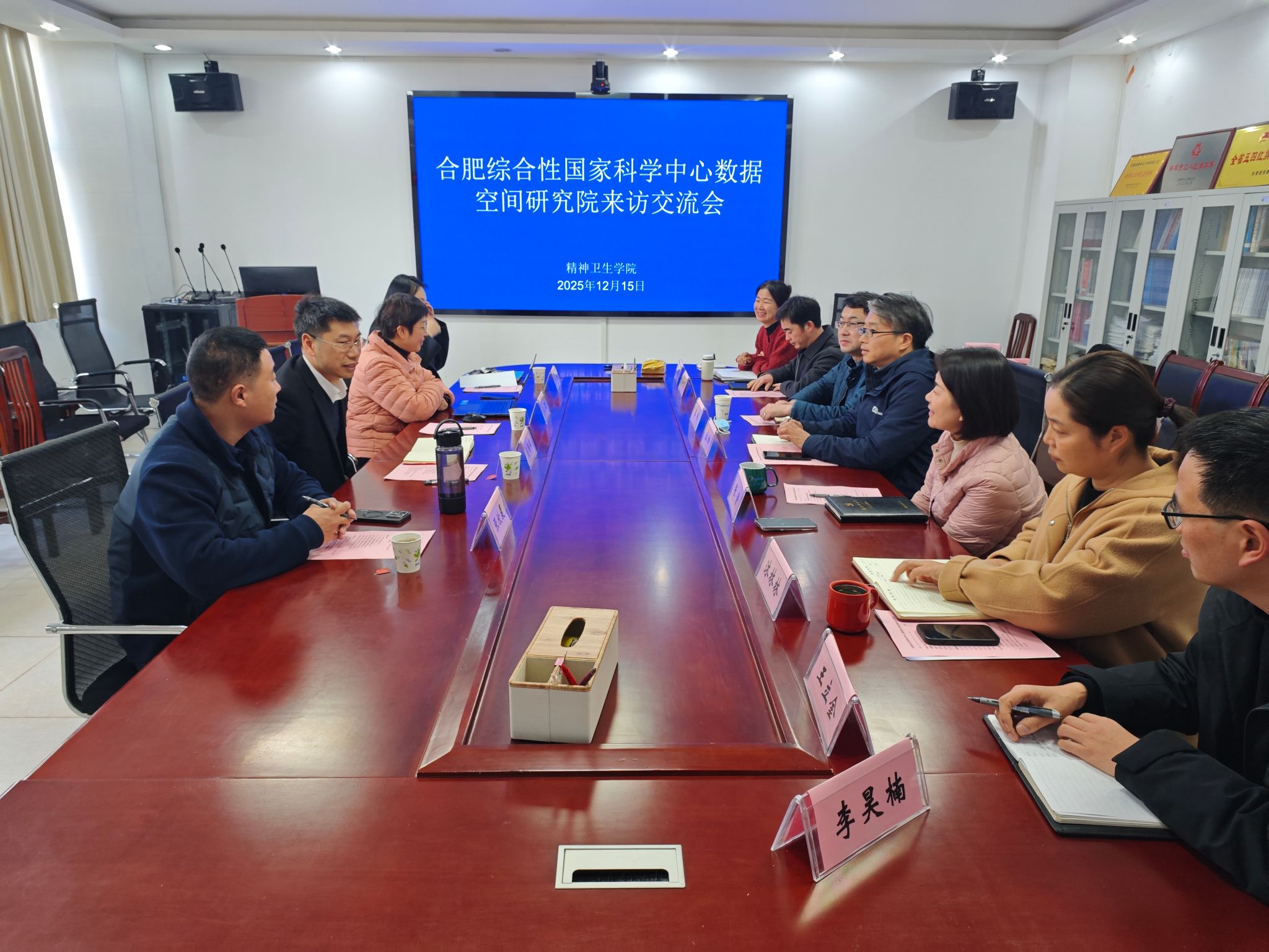 为深化校企合作,推动心理健康领域科研创新与成果转化,12月15日下午,合肥综合性国家科学中心数据空间研究院总工程师范联伟、主任李小璐等一行4人到访精神卫生学院,围绕共建“多模态心理健康评估系统”展开深入研讨。学院党委书记宋松、院长张静,以及教科研办公室、精神病学教研室、精神医学实验中心相关人员参加交流。