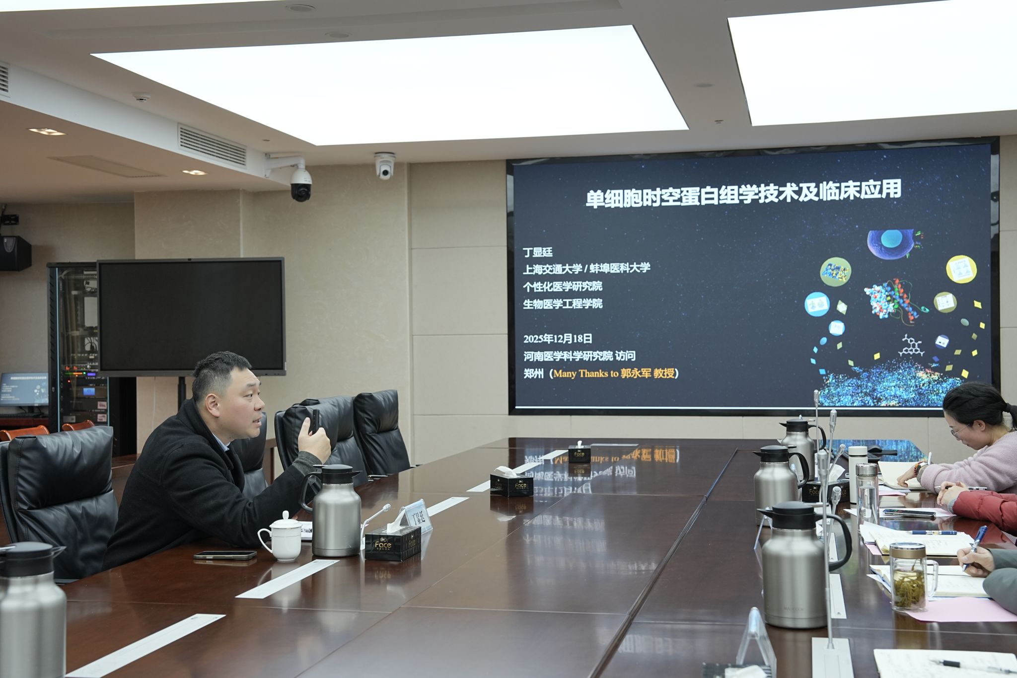 会上,丁显廷以《单细胞时空蛋白组学技术及临床应用》为切入点,系统介绍了其团队在单细胞蛋白质组学,尤其是超高分辨时空蛋白分析技术领域的原创性研究成果。他结合其协管学校科研及医学信息工程学院等工作的体会,就深化医工交叉合作提出了建设性意见和思路。强调实质性的交叉合作需要以项目为牵引,并要在研究生培养、科研成果署名与认定、科研项目依托等方面探索更具弹性与激励性的协同机制,推动工程技术方法与临床医学需求的深度融合,促进原创性科研产出。