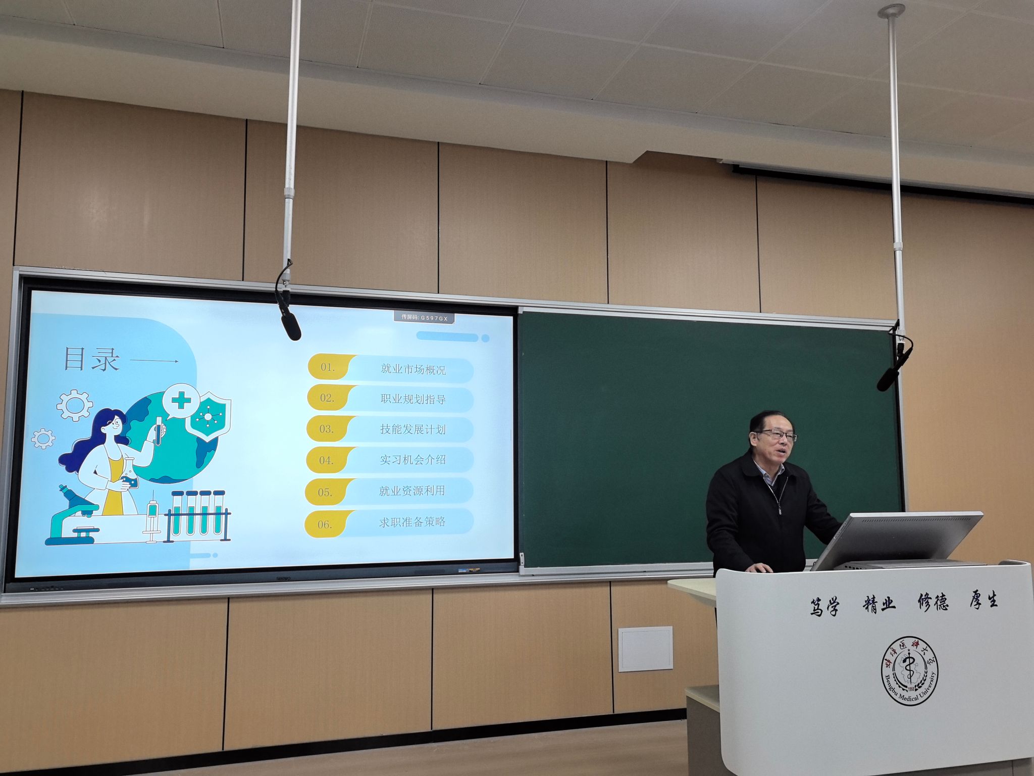 方强教授以就业展望与成长指引为主题,从就业市场概况、职业规划指导、技能发展计划、实习点介绍、就业资源利用及求职准备策略等方面入手,全面分析了医学检验技术及卫生检验与检疫专业的行业需求趋势与就业前景,为同学们规划大学学习生活、提升就业竞争力提供了清晰路径。他寄语新生要把握国家战略与行业蓝图,将个人理想融入健康中国大业,树立长远的职业目标,注重理论与实践相结合,不断提升自身综合素质,为未来的职业发展筑牢根基。