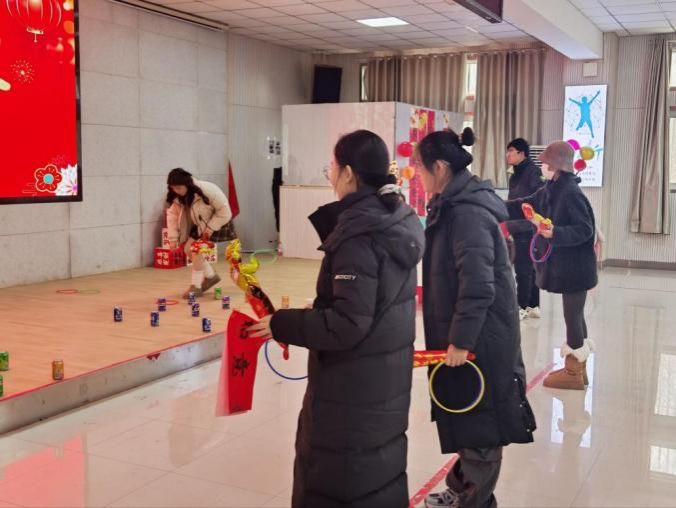趣味互动区热闹。许愿墙前,彩色便签密密匝匝贴成“心愿花海”,从“论文顺利”到“实验成功”,从“家人安康”到“友谊长存”,字字句句都是青春最本真的期待;套圈游戏区更是笑声不断,同学们屏息瞄准、轻抛竹圈,每一次命中都引发欢呼,简单的游戏因协作与分享更显珍贵。