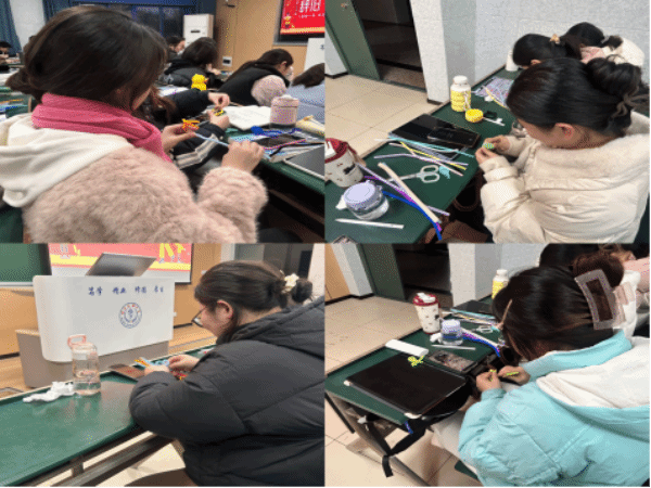 系列活动的首站——“扭扭乐解压坊”温馨开启。面对紧张的复习与密集的考试,同学们容易产生焦虑情绪。活动中,负责人细致讲解扭扭棒的使用方法与手工创作对缓解压力的积极作用。大家手持色彩缤纷的扭扭棒,自由发挥创意,将其编织成各式可爱造型。在专注手作的过程中,备考的紧张与疲惫悄然消散。随后的分享环节中,同学们积极交流创作灵感与作品背后的故事,在对话中传递温暖、增强心理韧性。