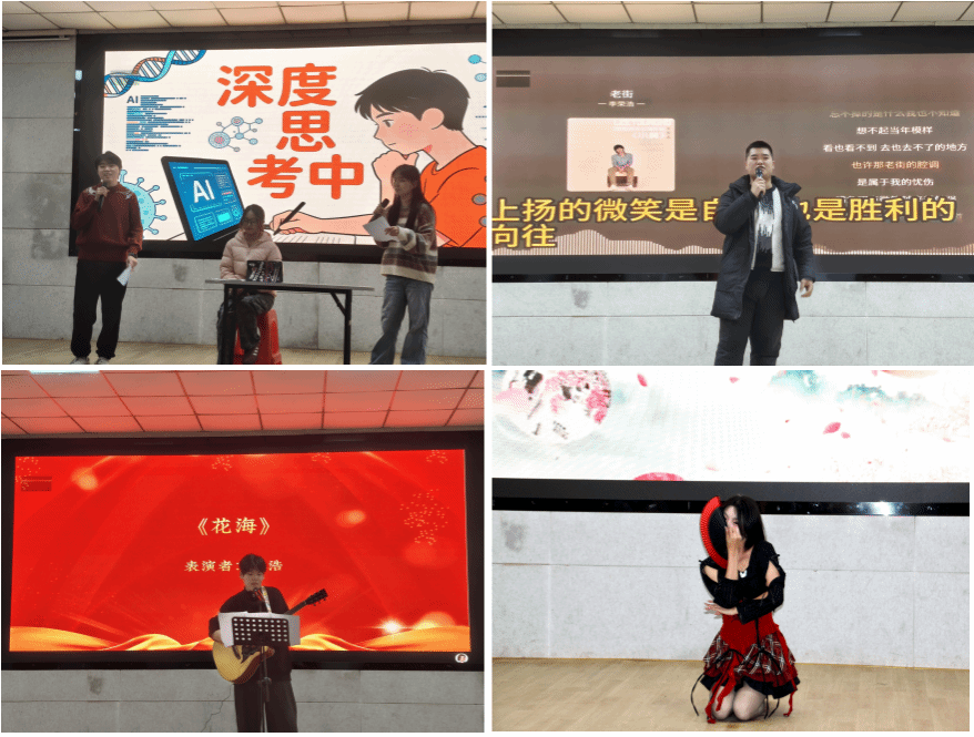 本次活动涵盖了慷慨激昂的朗诵、婉转动听的歌谣、热血沸腾的剑舞、轻盈灵动的舞蹈、诙谐幽默的小品。晚会在一曲饱含深情的《阿刁》中拉开帷幕,歌声悠扬婉转,以一场刚劲有力的剑舞圆满收官。演出过程中,表演学生全情投入,观众热情高涨,阵阵掌声与欢呼声此起彼伏,在沉浸式观赏中增进了彼此情谊,让这个元旦前夕的夜晚充满了温暖与归属感。