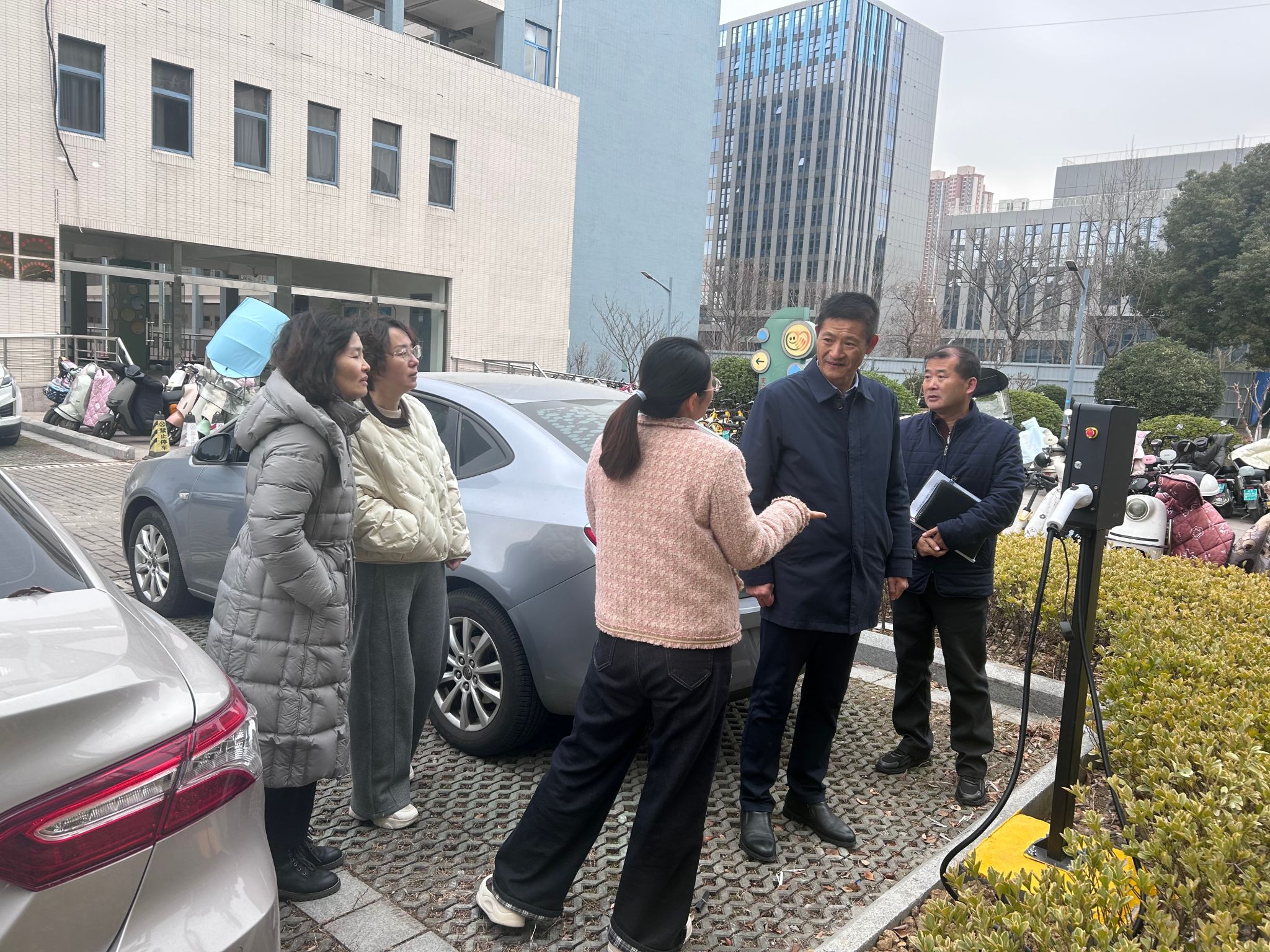 本次检视工作重点涵盖汽车充电桩增设项目、校内超市物价合理管控和校园公共卫生间环境。检视组一行在听取后勤管理处负责人情况介绍后,实地走访校内生活超市、学校G座电动汽车充电桩点位、图书馆一楼公共卫生间等,详细了解校内超市商品定价标准与物价管控措施、充电桩安装使用及规划情况、公共卫生间环境整治与日常保洁落实情况,逐项核查项目进度与实际成效,对后勤管理处相关工作给予充分肯定,并结合实际提出优化建议。