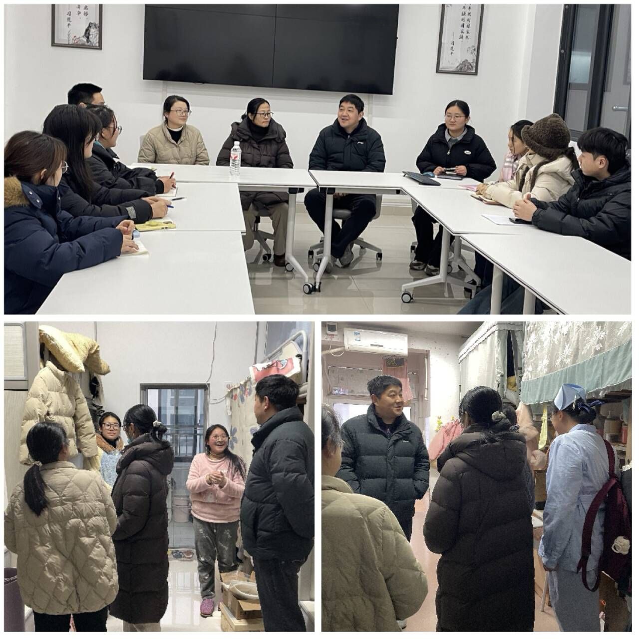 走访中,学院领导与同学们亲切交流,关心个人生活与学习情况,提醒注意冬季宿舍用电与防火安全。