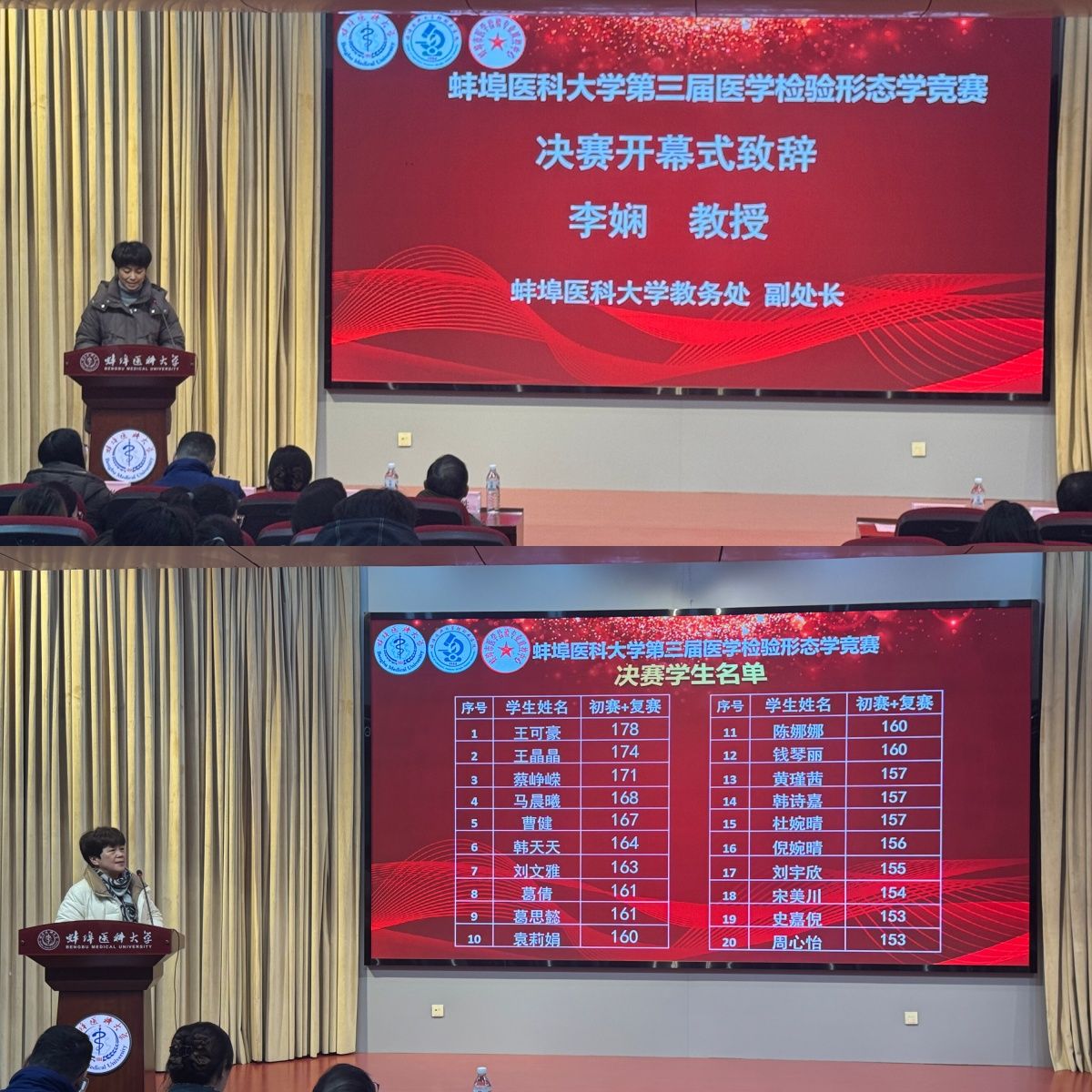 1月10日,蚌埠医科大学第三届大学生临床检验形态学竞赛顺利举办。本次竞赛由教务处主办,检验医学院、蚌埠市临床检验质控中心合办,旨在为形态学相关专业学生搭建交流提升平台,夯实诊断能力,强化岗位胜任力。