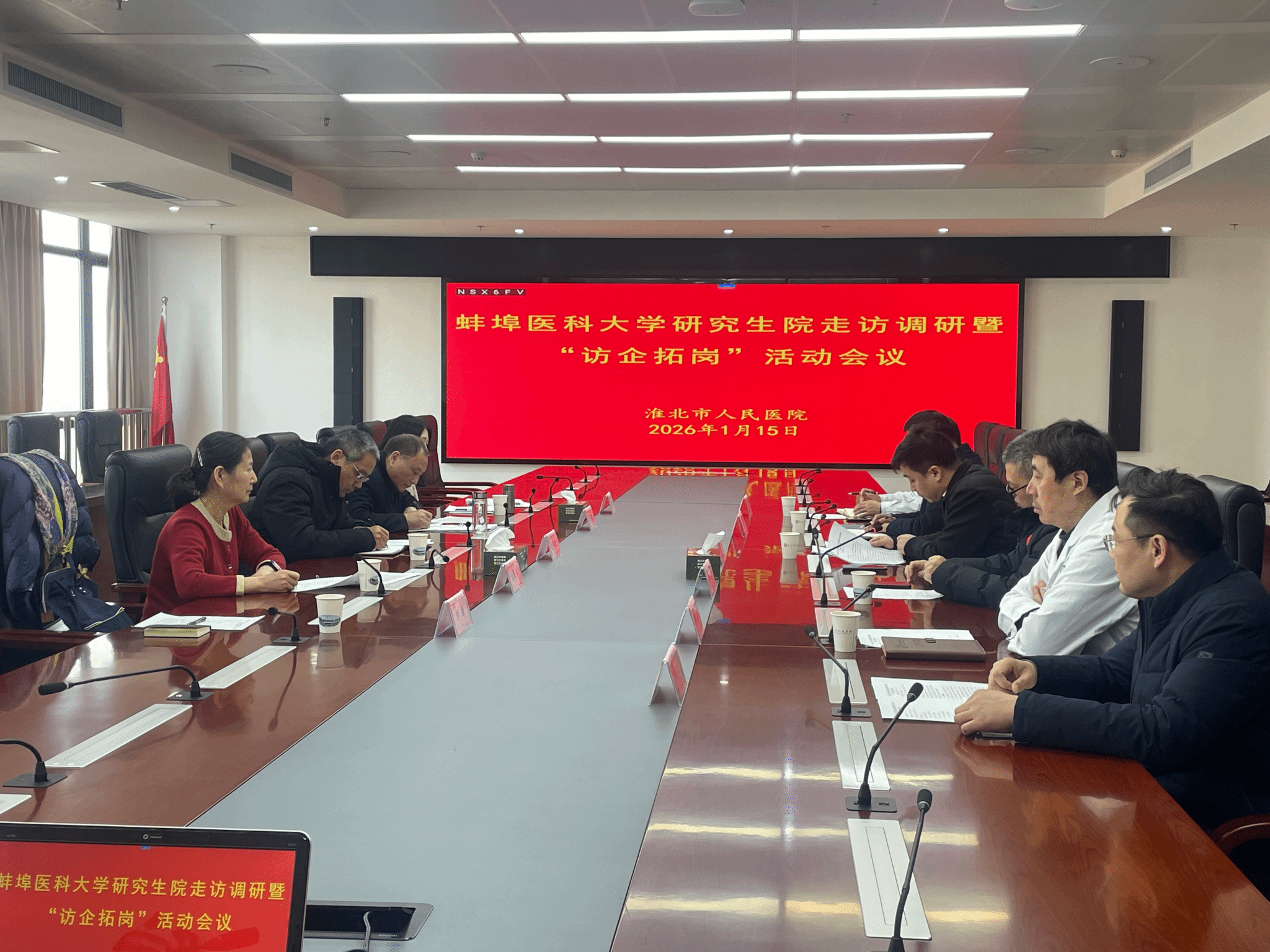 研究生院副院长裴丰庭、督导组专家赵元勤、徐家丽等一行于1月14日至15日前往亳州、淮北、宿州开展规培基地走访、访企拓岗活动,进一步了解医院用人需求和发展动态,加强学校与研究生培养基地的深度合作,提升研究生培养质量。