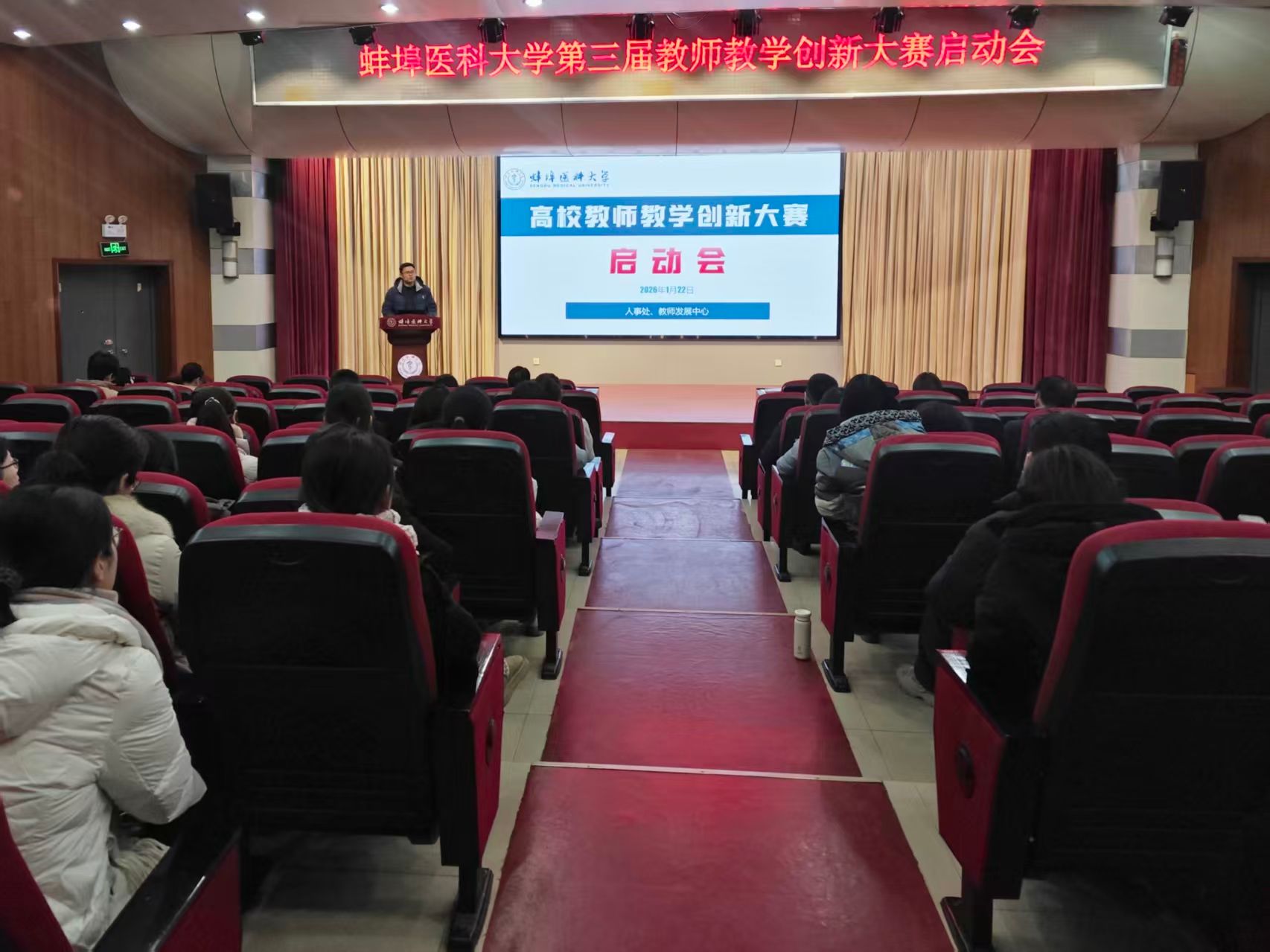 1月22日下午,学校召开第六届全国高校教师教学大赛校赛启动会,各教学单位参赛教师、院长及分管教学副院长参加会议。