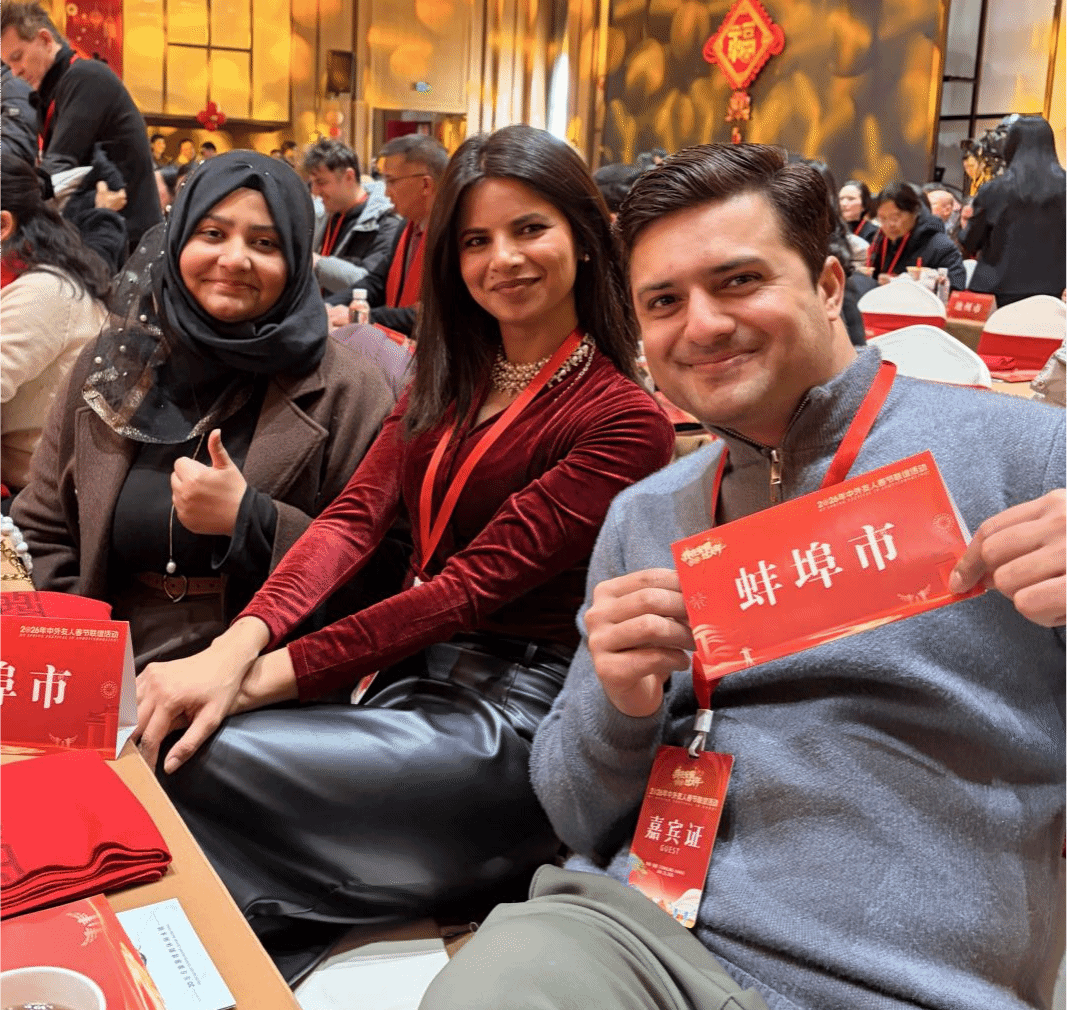 1月23日,由安徽省外办(省港澳办)、铜陵市政府共同主办的2026年“我在安徽过大年”活动在铜陵市义安区犁桥水镇启幕。我校留学生代表受邀参与,与来自59个国家和地区的140余名外籍友人和港澳同胞相聚,在徽派水乡中沉浸式感受中华传统文化魅力,共赴新春之约。