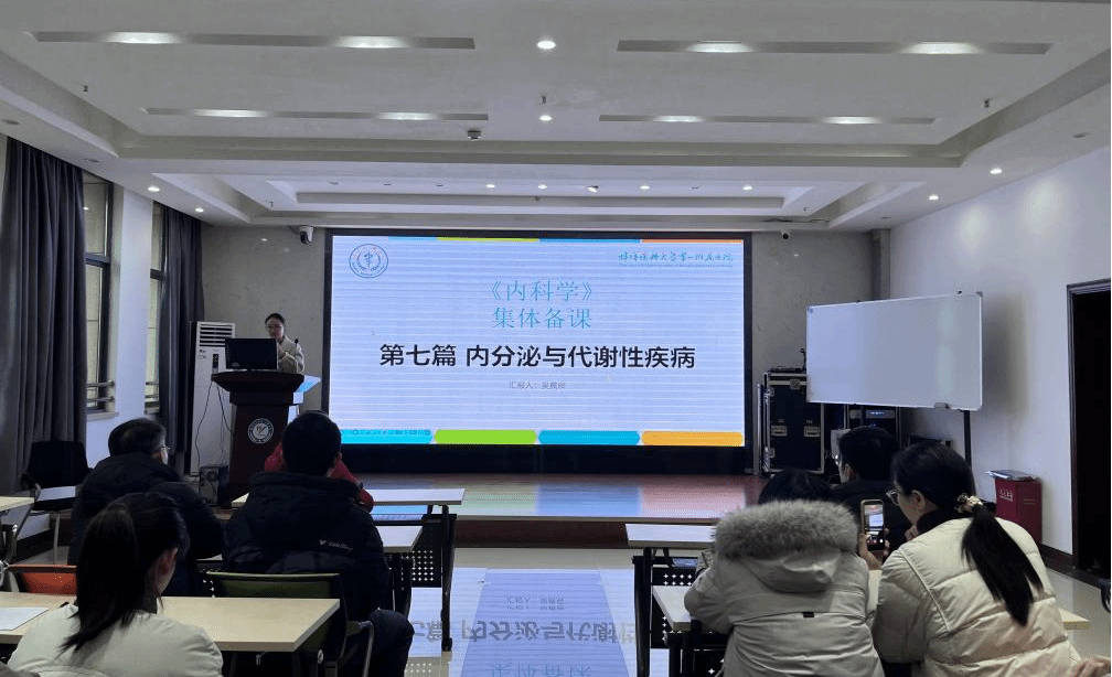 2月6日下午,第一临床医学院“杏林论坛”举行。本次论坛主题是“示范集体备课”,由内科学教研室进行示范,主备教师吴晨辰副主任医师展示《甲状腺功能亢进症》的教学设计。副院长葛荣靖、教学科科长李妙男及各教研室主任、秘书、骨干30余人参加。