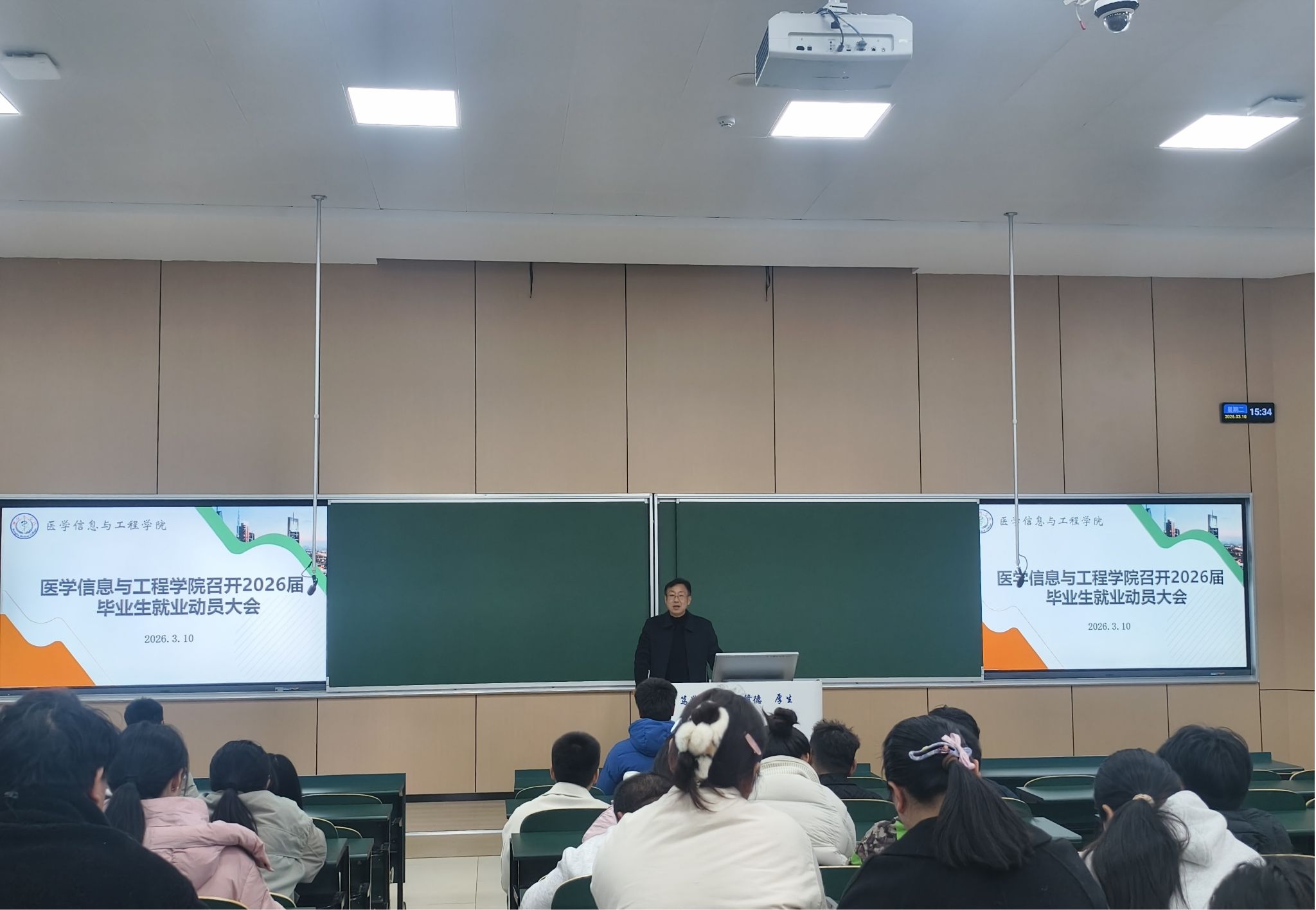 3月10日,医学信息与工程学院召开2026届毕业生就业动员大会。学院党委副书记贾先果、毕业年级辅导员王俊及2026届全体本科毕业生参会。