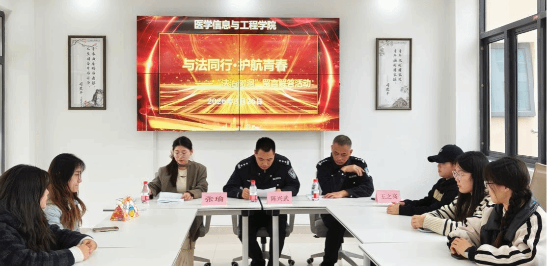 3月26日,医学信息与工程学院9号楼功能型党支部、团支部在“一站式”学生社区综合活动室联合举办“法治树洞”专题活动。校外法治导师陈兴武、法治辅导员王之高、学院辅导员张瑜及全体法治宣传员参加活动。