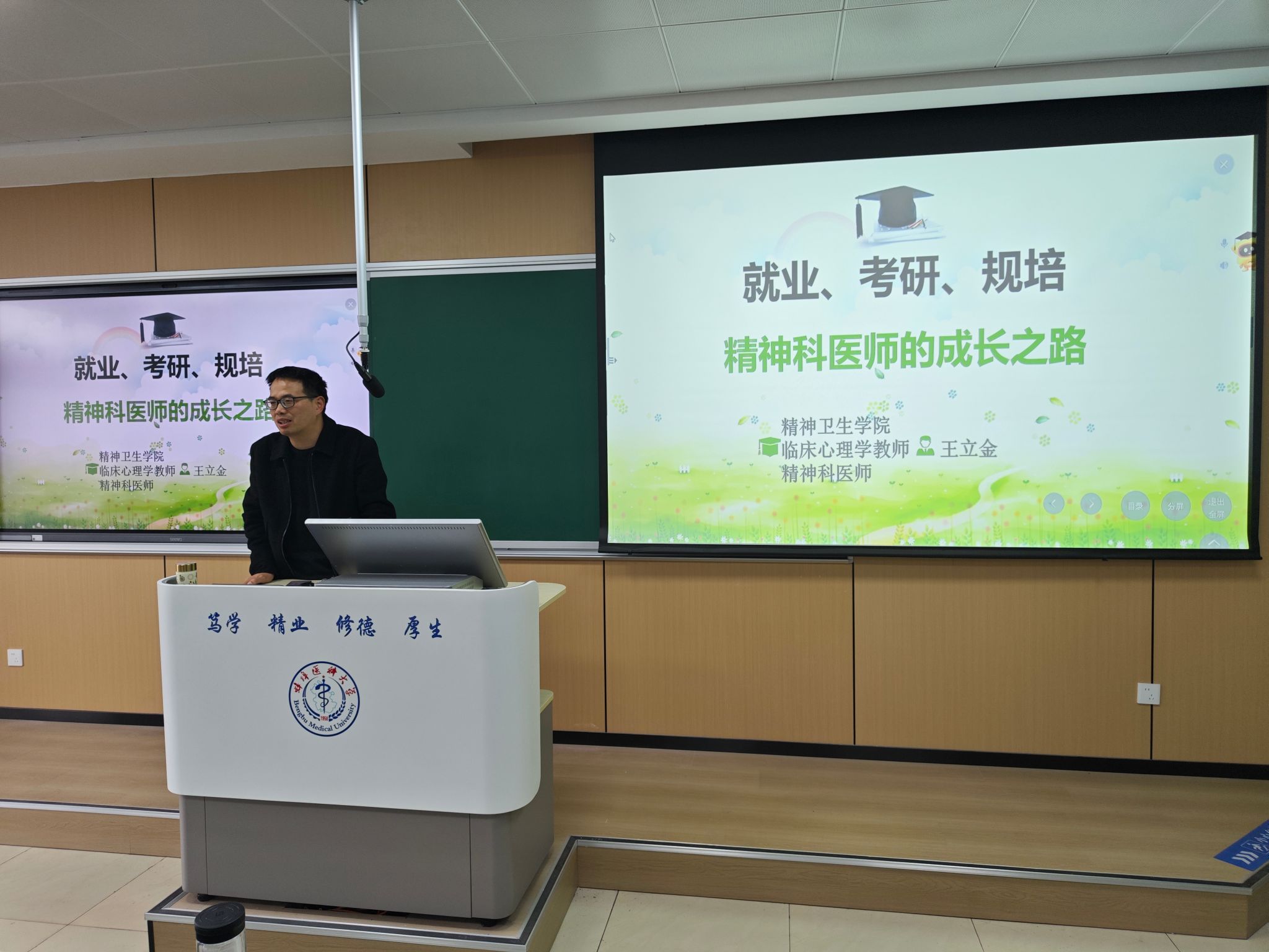 3月26日,精神卫生学院邀请精神医学实验中心副主任、精神科医师王立金老师,为2022级精神医学专业全体学生开展职业生涯发展规划专题讲座,帮助同学们明确发展方向、理清成长思路。
