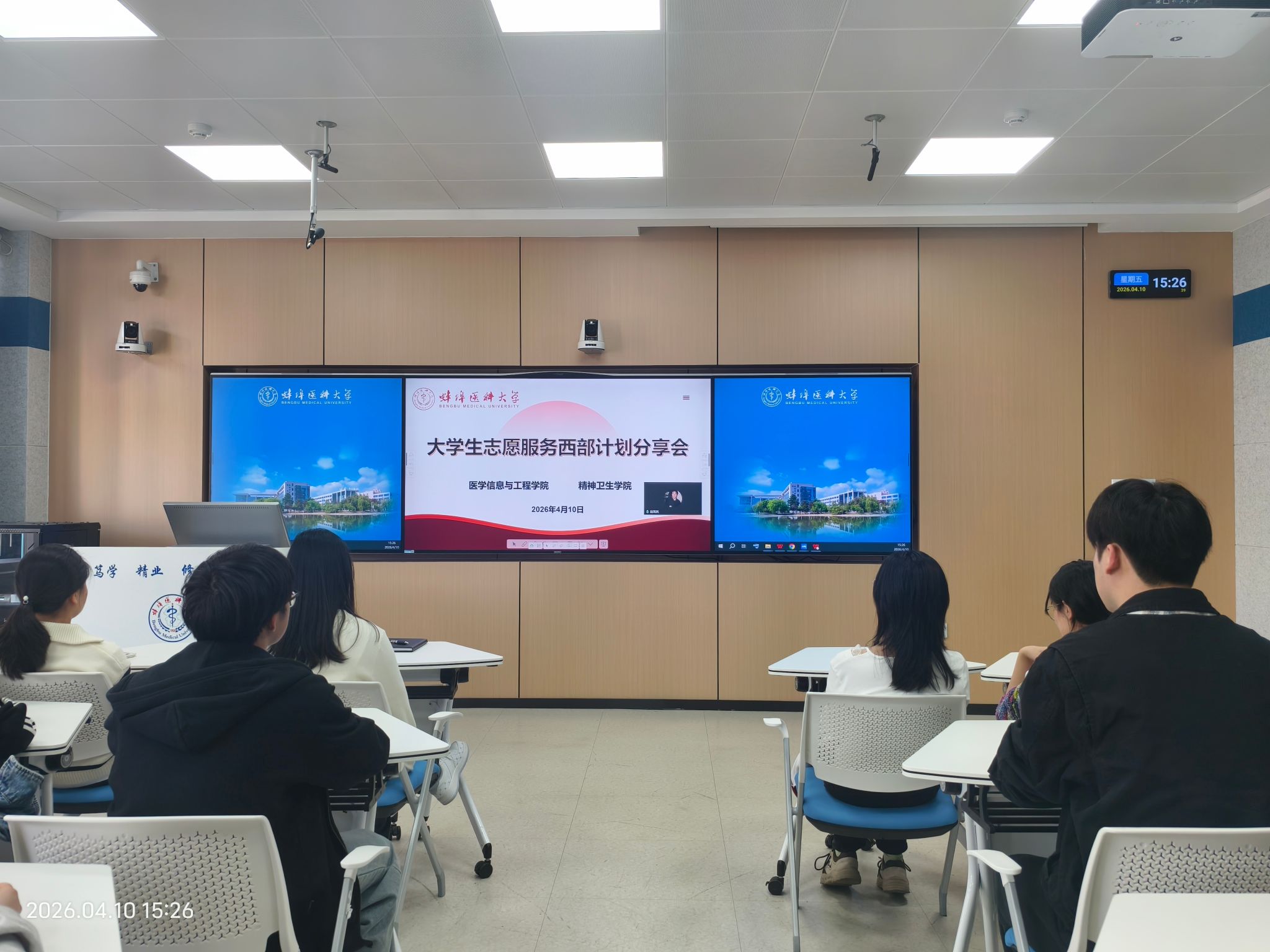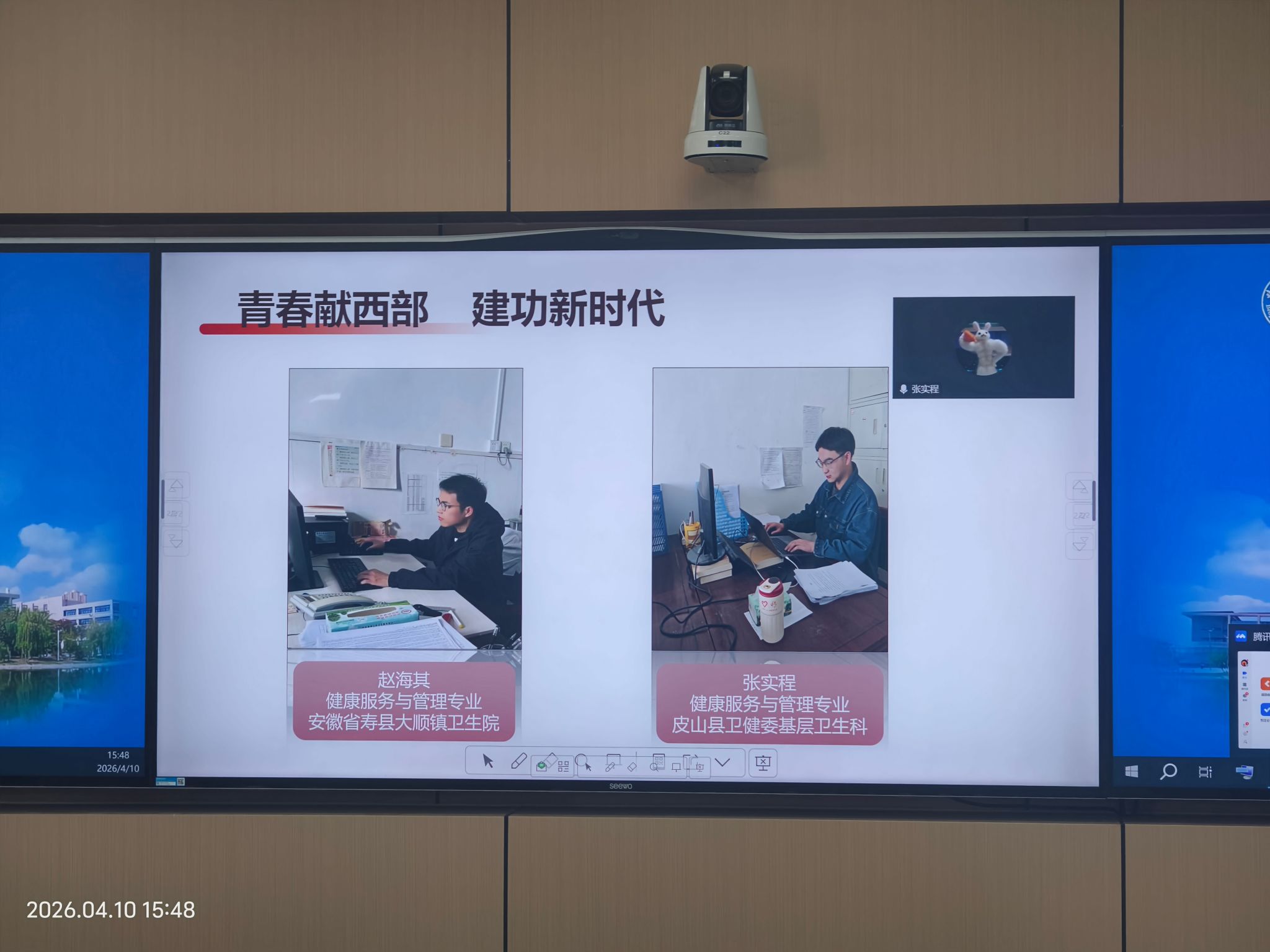 4月10日,医学信息与工程学院联合精神卫生学院举办大学生西部计划志愿服务线上经验分享会。两院毕业生齐聚云端,共听基层志愿故事,汲取青春奋进力量。