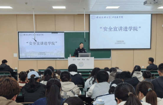 4月13日下午,口腔医学院特邀蚌埠市龙子湖区110指挥中心主任陈兴武警官为大学生作“安全宣讲进学院”宣讲会,切实提升学生网络安全意识与反诈防骗能力。