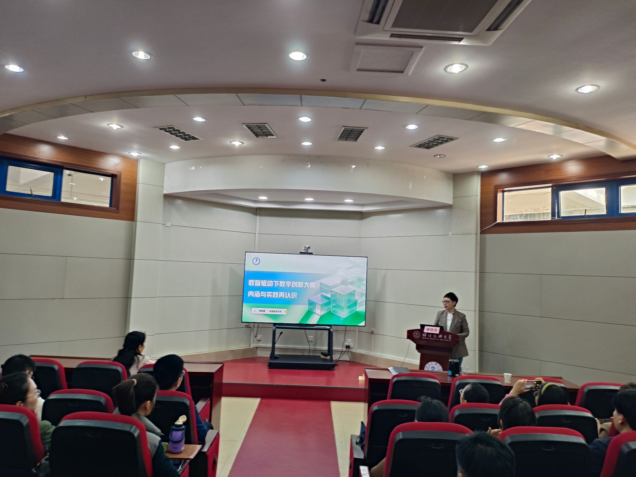 讲座中,廖晓慧副教授结合自身丰富的教学与竞赛经验,系统解读数智教学最新政策、发展背景与实践方向,深度剖析教学创新大赛核心要义,围绕竞赛备赛要点、评分标准、教学模式创新、教学设计汇报等关键环节展开细致讲解。她分享了教学创新实践案例与备赛心得,并开展现场课堂教学示范,将理论方法与实操展示有机结合,内容详实、指导性强。讲座结束后,廖晓慧副教授还对学院参加“第六届全国高校教师教学创新大赛安徽赛区现场赛”的教师进行了赛前辅导。
