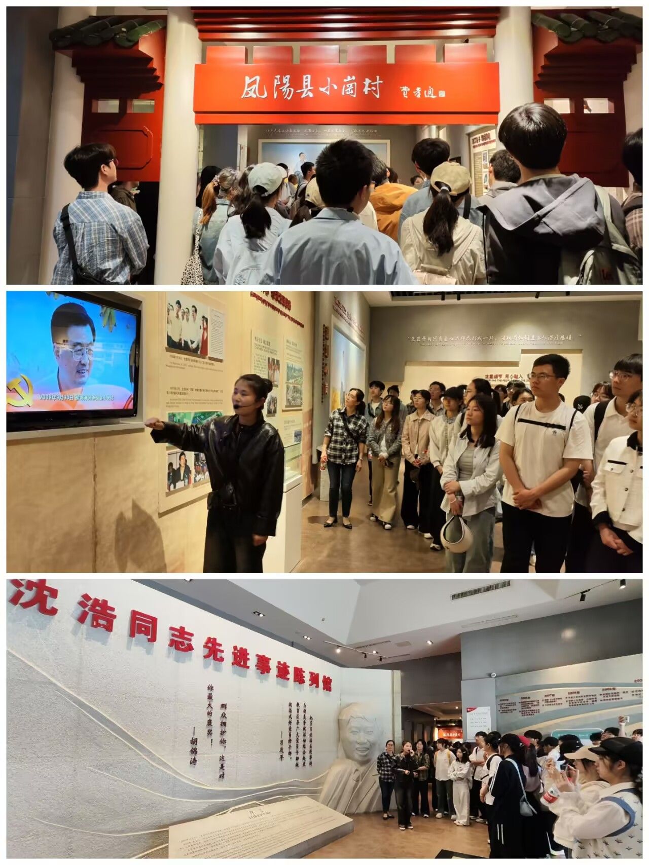 抵达小岗村后,师生党员怀着崇敬之心走进沈浩同志先进事迹陈列馆。馆内照片、日记、遗物等实物生动还原了沈浩同志扎根小岗六年的奉献历程。他走遍全村每户人家,制定发展蓝图,打通交通瓶颈,招商引资改建村民住房,让小岗村面貌焕然一新,用生命诠释了党员初心。沈浩同志“把群众当家人”的情怀深深打动了在场每一位党员,大家纷纷表示,要以沈浩同志为榜样,将奉献精神融入学习工作。
