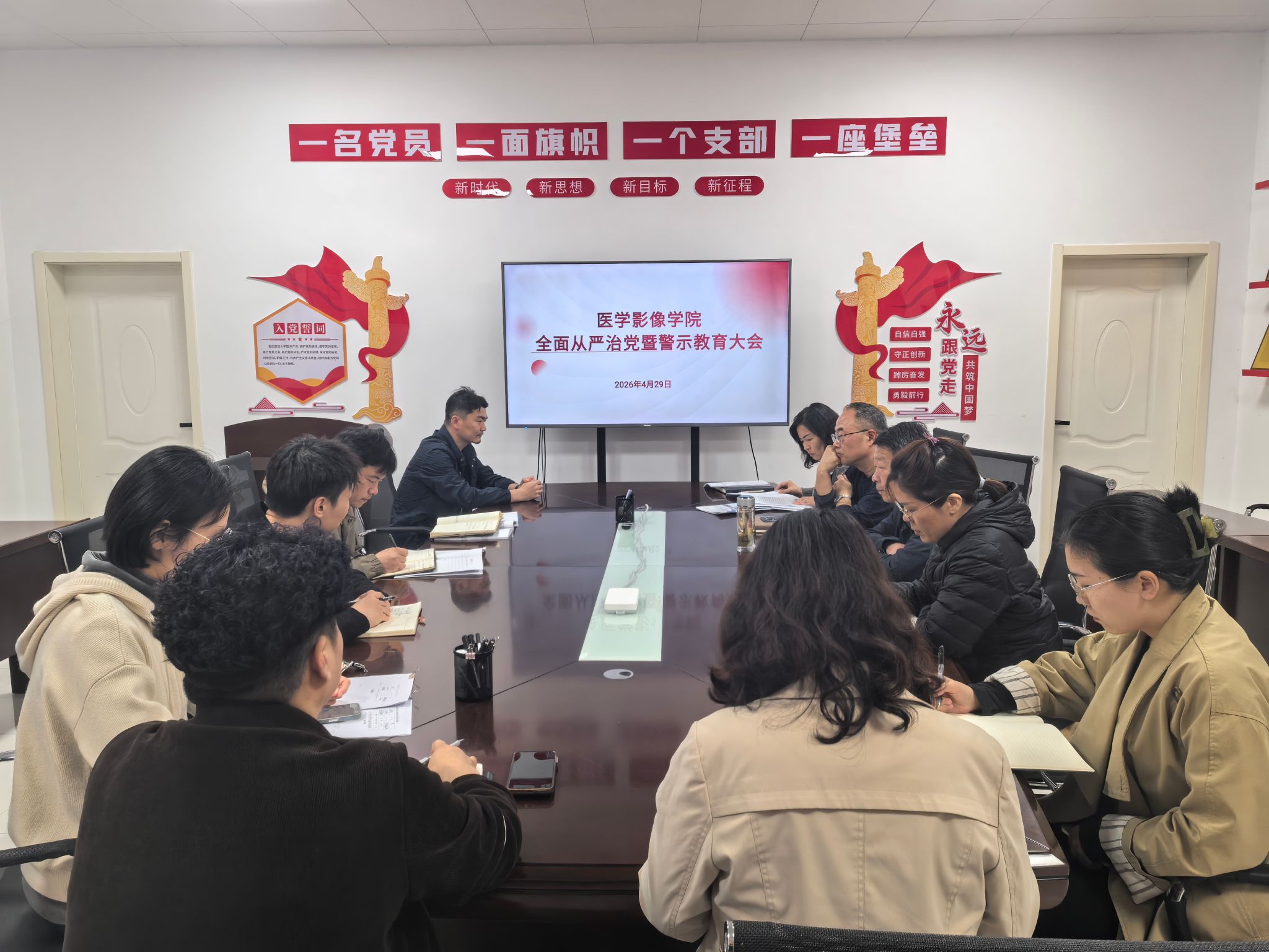 4月29日,医学影像学院召开全面从严治党会议暨警示教育大会。学院党政领导班子、党委委员、纪委委员,全体科级以上干部、支部书记、教研室负责人参加会议。